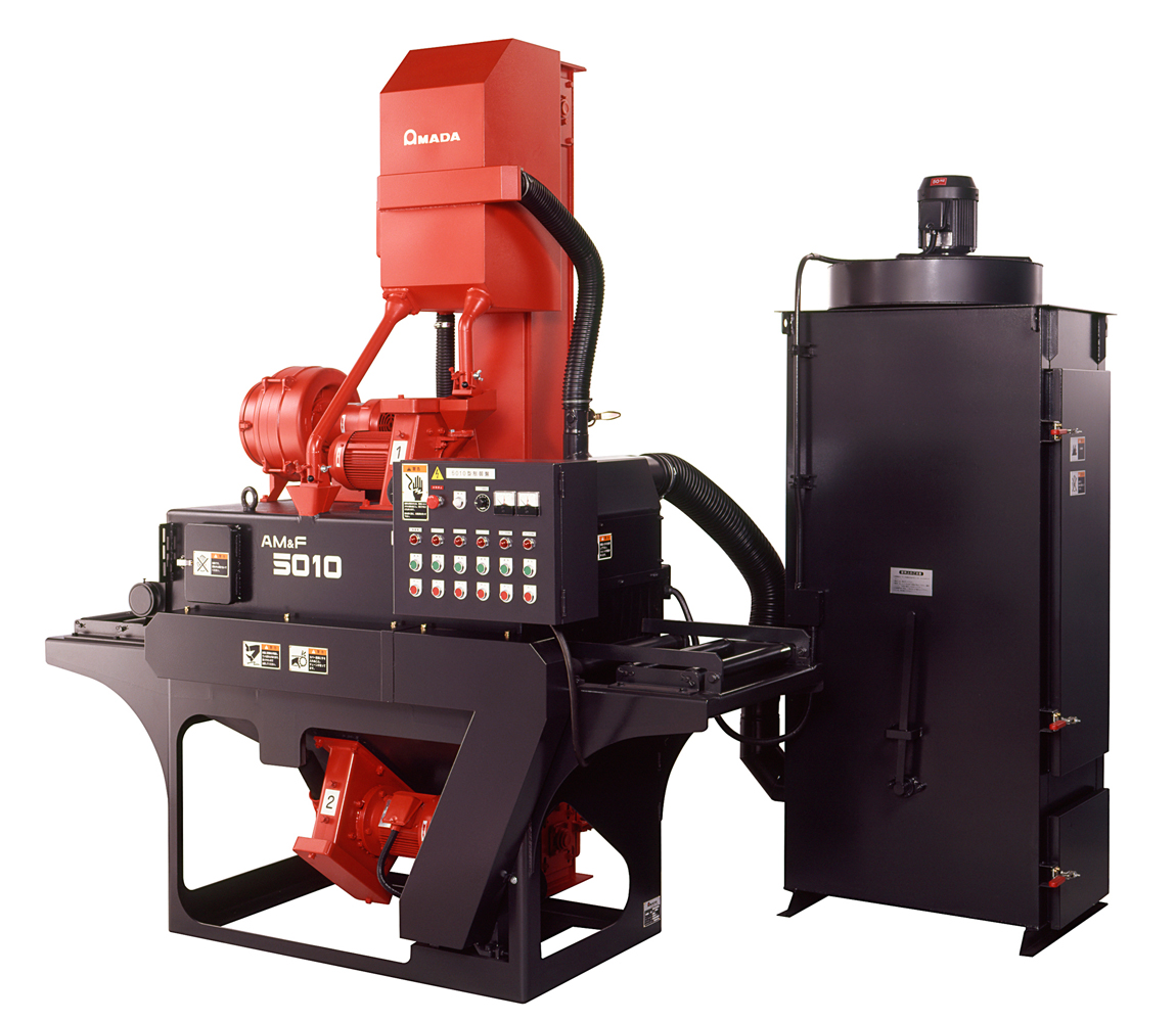 機種名 AM&F-5010 AM&F-3045 投射量(kg/min) 45×2(50Hz)、40×2(60Hz) 50×1(50Hz)、40×1(60Hz) パケット輸送量(kg/min) 95(50Hz)、90(60Hz) 60(50Hz)、50(60Hz) 研掃速度(m/min) 0.4~3.1 0.7~2.5 クリーナー風量(m³/min) 3.2 – 集塵装置風量(m³/min) 15 5 集塵装置風圧(m/Ag) 200 加工能力(W×H)(mm) 500×100 450×30 電源容量(kW) 7.45 3.4 マシン質量(ショット玉除く)(kg) 1200 700